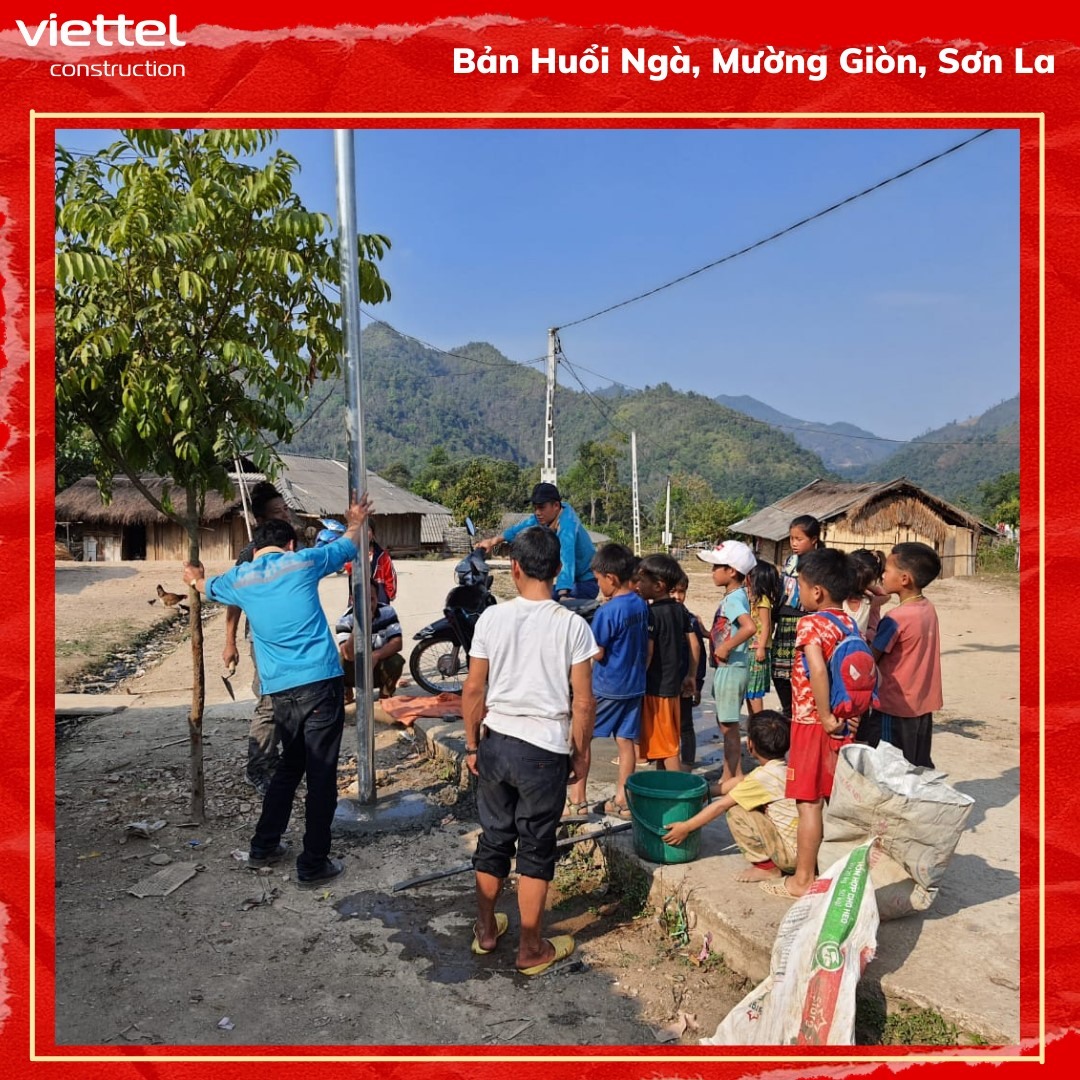 CNKT Viettel Sơn La đưa ĐÈN NĂNG LƯỢNG MẶT TRỜI về với người dân Bản Huổi Ngà, Xã Mường Giòn, Huyện Quỳnh Nhai. Từ nay bản nhỏ lại có thêm nguồn điện mới cho mấy em nhỏ nô đùa, người lớn an tâm làm công chuyện.