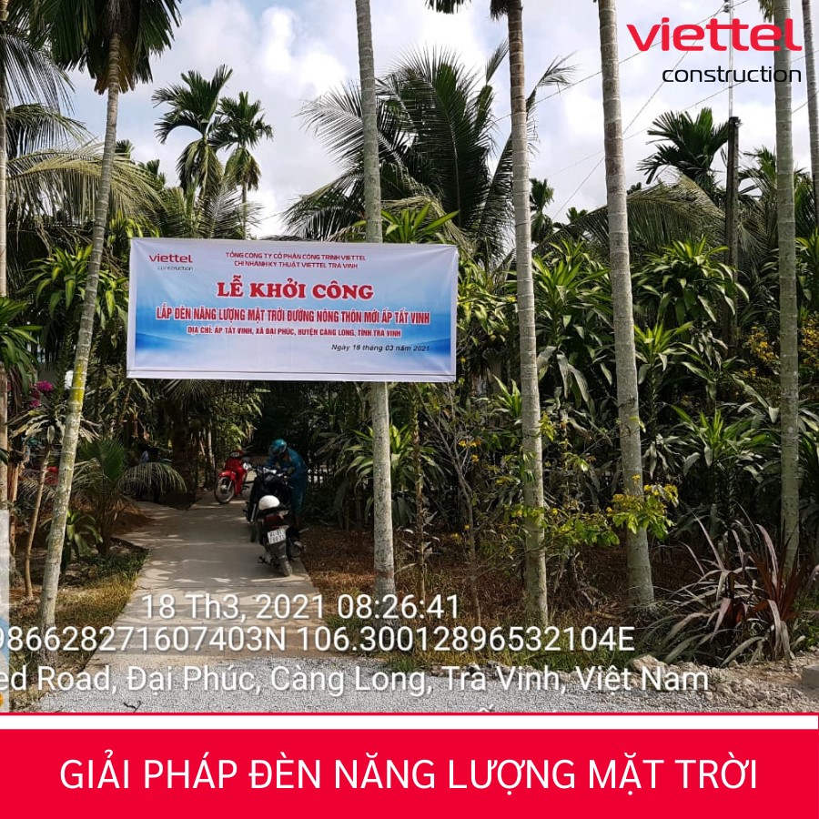 Ngày hôm nay 18/3, CNKT Viettel Trà Vinh vừa tổ chức lễ khởi công dự án đèn năng lượng mặt trời tại Ấp Tất Vinh - xã Đại Phúc - huyện Càng Long - tỉnh Trà Vinh